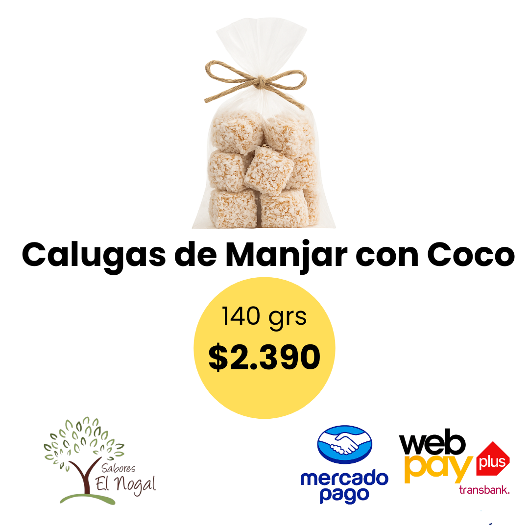 La caluga de manjar con coco es un dulce tradicional cubierto con coco rallado, que combina la cremosidad del manjar con un toque suave y natural. Es perfecta para disfrutar como snack o en momentos especiales.