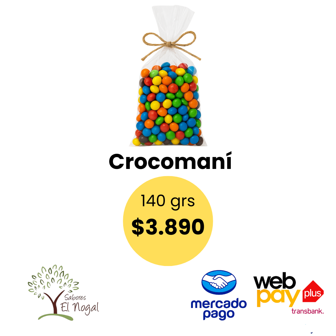 El crocomaní es un maní crocante bañado en confite con sabor a chocolate y caramelo. Es un snack lleno de energía, ideal para los amantes del dulce y perfecto para compartir o darse un gusto especial.