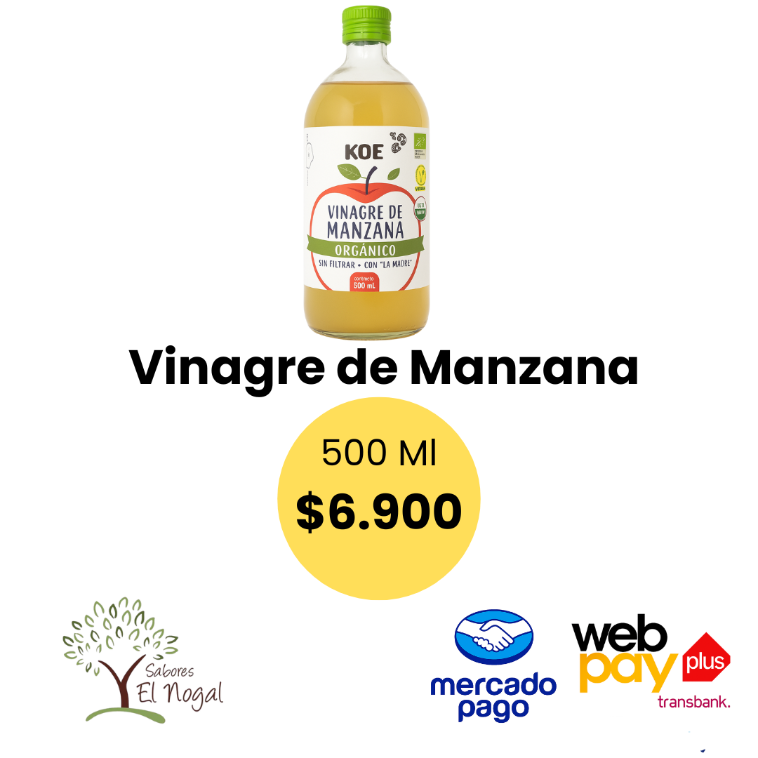 Vinagre de Manzana Orgánico KOE, sin filtrar y con la madre, elaborado a partir de manzanas 100% orgánicas. Un fermentado natural que conserva enzimas vivas y probióticos, ideal para cuidar tu salud digestiva y potenciar tus comidas con un toque ácido y refrescante.